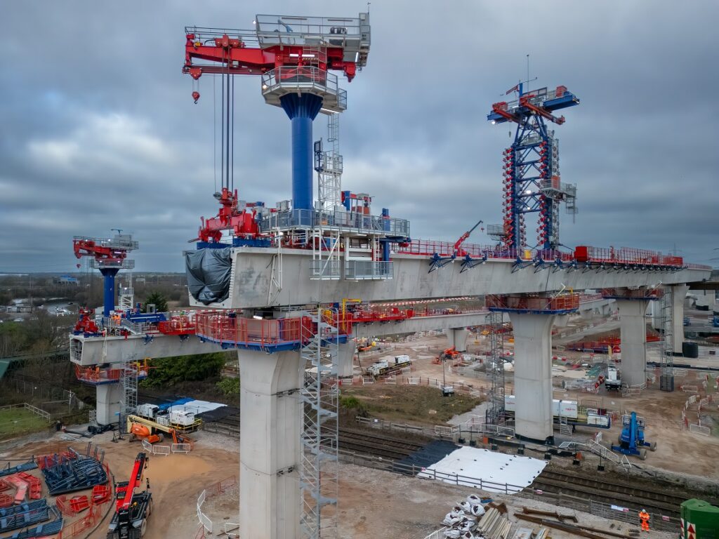 “Our teams worked around the clock to safely erect two viaduct spans over an operational railway,” he said. “The specialist cantilever technique we’re using, which involves a 22-metre mast and a swivel crane to position each segment, has not been used in the UK before HS2 and allows us to deliver these structures with precision while keeping disruption to a minimum.”